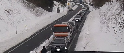 執筆時の状況:現場は積雪が見受けられます。冬用タイヤの装着はもちろん、車間距離を十分に保ち、安全運転を心がけてください。