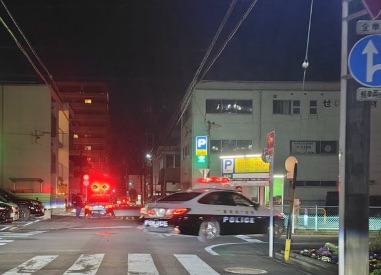 - 状況:パトカー複数台による臨場、規制など