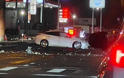 - 状況:乗用車(プリウス等の白の車両)の単独事故の模様