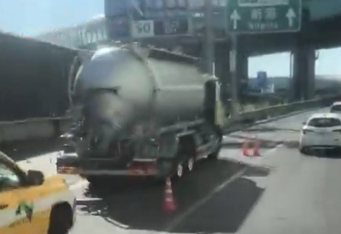 現場では大型のタンク車(故障車)が車線の一部を塞いでおり、カラーコーンによる規制が行われています。川口ジャンクション付近から渋滞が始まっているとの情報もあり、広範囲に影響が及んでいます。