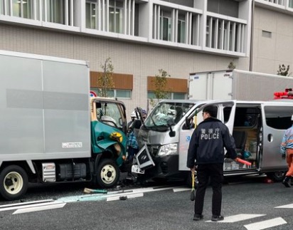 2月12日午前8時頃、東京都板橋区東坂下2丁目の国道17号(中山道)、志村警察署付近において、トラックとワンボックスカーが関係する交通事故が発生しました。