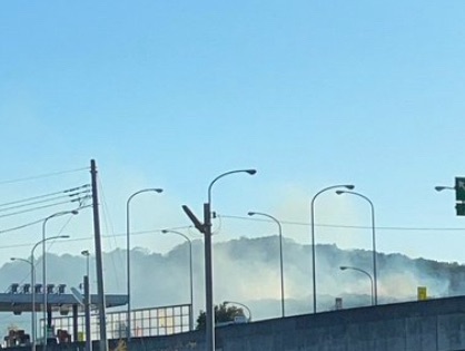 現場付近では黒い煙が混じっており、林野火災の可能性があります。近隣の方は煙を吸い込まないよう窓を閉め、今後の延焼情報に十分ご注意ください。