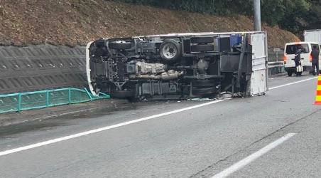【事故】東名高速(下り)袋井IC〜磐田IC間でトラック横転など複数台絡む事故発生(2月25日)