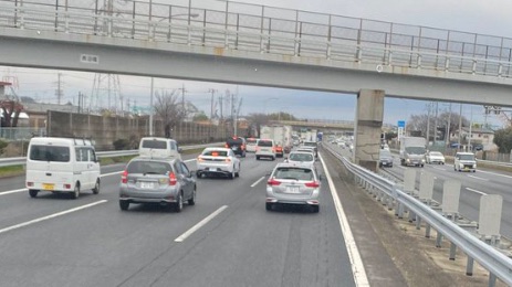渋滞の後尾では追突事故が非常に発生しやすくなります。ハザードランプでの合図を早めに行い、十分な車間距離を保って安全運転をお願いいたします。