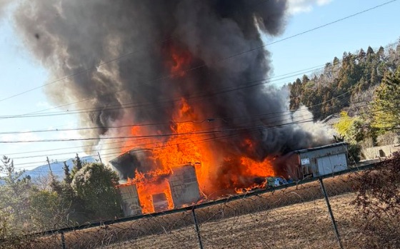 現地からの報告によると、プレハブ小屋や工場付近から火の手が上がり、激しく燃え盛る様子が確認されています。