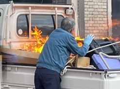 - 状況:軽トラックの荷台に積載されていた荷物から出火