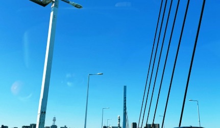 現場は那珂川に架かる斜張橋「万代橋」の上、またはその前後とみられ、見通しは良いものの交通量が多い区間です。SNS上の報告では、事故車両の撤去や現場検証のため、車線規制が行われているとの情報があります。