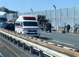 - 事故内容:大型トラックのフロント部分が大破する等、計5台が絡む多重事故