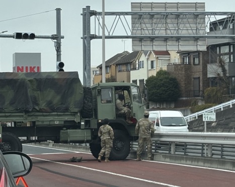 - 事故内容:米軍の大型トラックが中央分離帯に乗り上げ、車線を塞ぐ形で停止