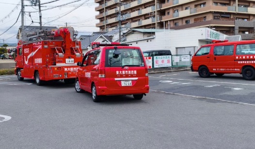 近隣にお住まいの方や付近を通行される方は、消防車両の通行を妨げないよう注意し、安全を確保してください。