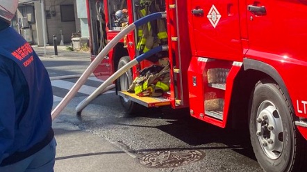 「南区火災、中村側が進めない状況です」