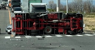 【事故】深谷本庄バイパス上増田交差点でトラック横転事故|国道17号の渋滞・通行止め状況