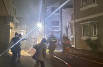 - 消火活動:消防隊によるホースの延長が行われ、懸命な消火作業が続いています。