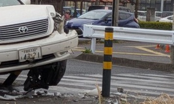 - 状況:乗用車による衝突事故。車両が大破しており、破片が散乱している模様。