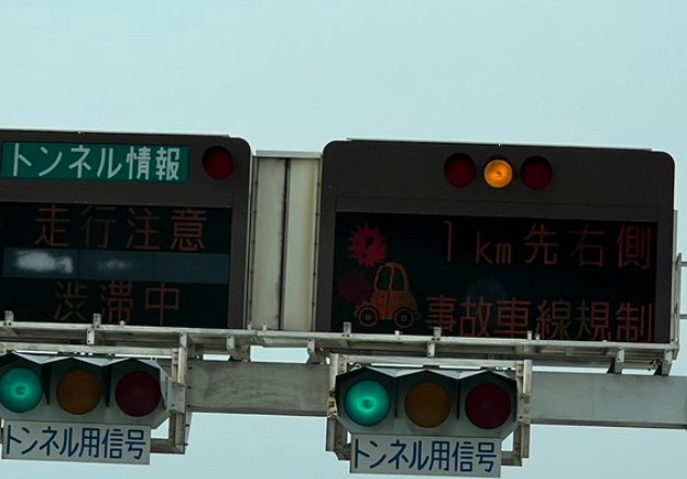渋滞末尾での追突事故が非常に多くなっています。ハザードランプによる後続車への合図を徹底し、十分な車間距離を保って走行してください。また、トンネル内は排気ガスが滞留しやすいため、長時間の停止が予想される場合は内気循環への切り替えをお勧めします。