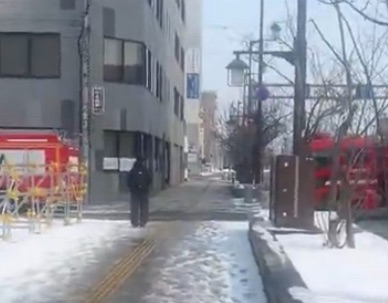 現場は旭川市中心部の市街地で、歩道には雪が残る中、複数の消防車両が集結している模様です。