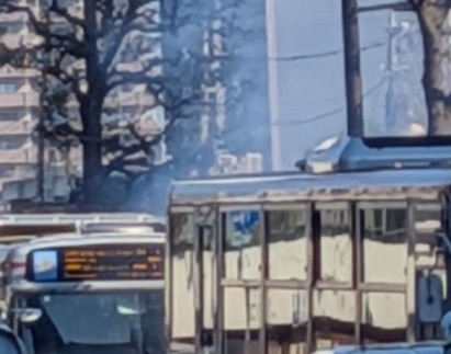 画像や投稿された情報によると、目黒駅近くの路上でバスの車体後部付近から白い煙が立ち上っている様子が確認されています。現時点で火災に発展しているのか、あるいは車両故障(オーバーヒートやオイル漏れ等)によるものなのか、詳細は判明しておりません。