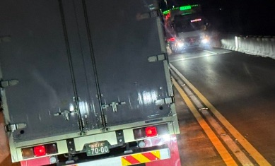 現場からの報告によると、警察車両(PC)の到着前に大型車両が立ち往生しており、付近を通行する車両は回避走行が必要な状態となっていました。深夜帯のバイパスは視界が悪いため、追突等の二次災害に十分ご注意ください。