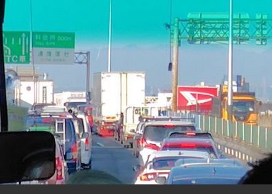 「伊勢湾岸、飛島で事故渋滞。追い越し車線が潰れていて、通過に70分かかる」