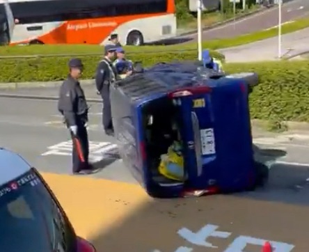 2026年3月27日(金)午後2時過ぎ、羽田空港第1ターミナル付近の路上で軽自動車(ホンダ N-BOX)が横転する事故が発生しました。