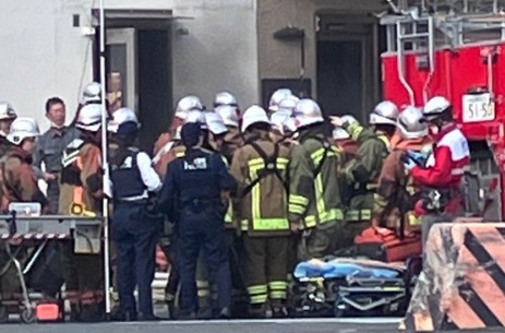 15時過ぎから消防車やパトカーが多数出動しており、上空にはヘリコプターも旋回しているとの報告があります。