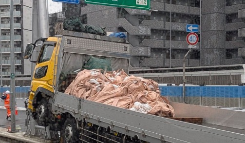 - 事故状況:黄色いトラックが関与する事故。車両が大きく損傷しており、車線を塞いでいる模様です。
