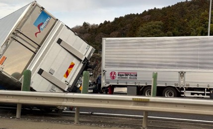 • 事故内容:315.28kp付近にて、大型貨物車と乗用車を含む2〜3台が衝突・横転。