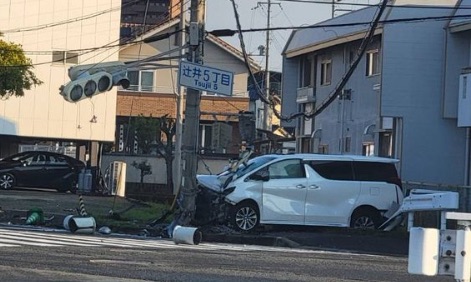 事故が発生したのは、姫路市辻井3丁目・5丁目付近の交差点です。目撃情報によると、白いミニバン(アルファード/ヴェルファイア等)が路肩の電柱に激しく衝突しました。