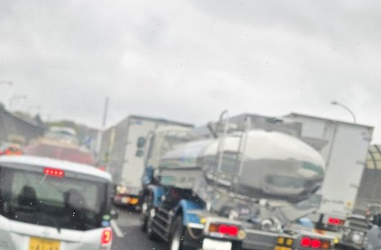 画像やSNSの情報では、大型車両を含む複数の車が列をなしており、流れが完全にストップしている時間帯がある模様です。雨天や曇天による視界不良の影響も考えられるため、付近を走行中の方は車間距離に十分注意してください。