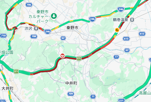 東名高速道路(下り)秦野中井〜大井松田間で事故による激しい渋滞が発生か