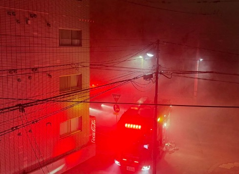 - 大量の煙の発生: 現場周辺の道路や隣接する建物まで真っ白な煙が立ち込めており、近隣住民が窓を開けると一気に煙が流れ込んでくるほどの状態でした。