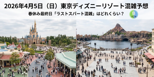 春休み最終日となる4月5日の全体的な混雑レベルは「Bランク(やや混雑~普通)」です。ディズニーに慣れている方にとっては「まぁ普通」と感じるレベルですが、油断は禁物です。
