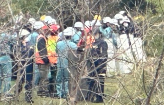現地では多数の警察官やヘルメットを着用した作業員が集結しており、報道機関のカメラマンも多数駆けつけるなど、緊迫した状況が続いています。