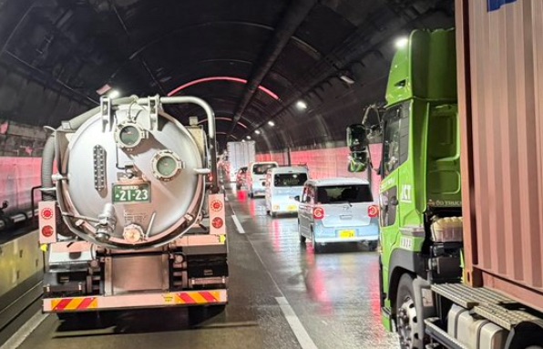 - 状況:事故による車線規制、およびトンネル内を含む激しい渋滞