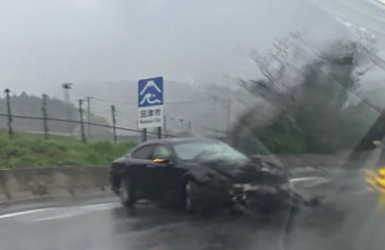 現在、現場付近は強い雨が降っています。雨の日の高速道路はハイドロプレーニング現象が起きやすく、特に新東名は速度が出やすいため非常に危険です。