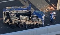 現場画像では、ダンプカーが完全に横倒しになっており、機材が散乱している様子が確認できます。この影響で、付近の道路は非常に激しい渋滞が発生しています。
