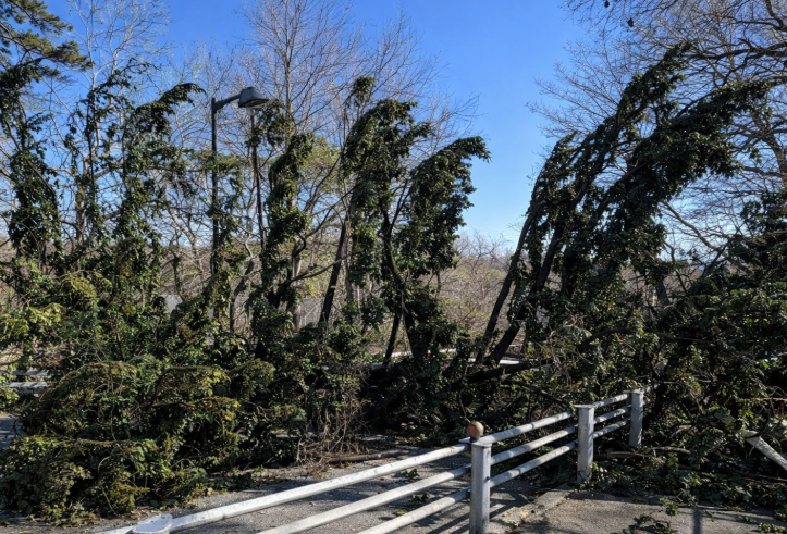 現在も強風が続いており、新たな倒木や飛来物の危険があります。通行には十分ご注意ください。