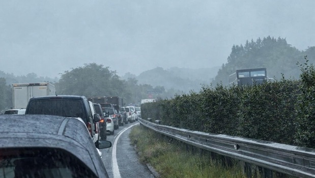 現場は雨天による視界不良や路面の滑りやすさが影響している可能性があります。通行には十分な注意が必要です。