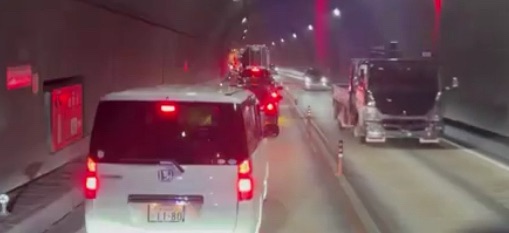 - トンネル内まで車列が伸びており、通行には注意が必要。