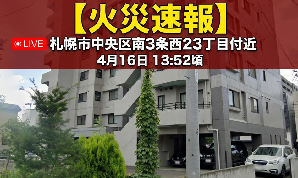 2026年4月16日、札幌市中央区で火災が発生し、現在消防隊が出動しています。